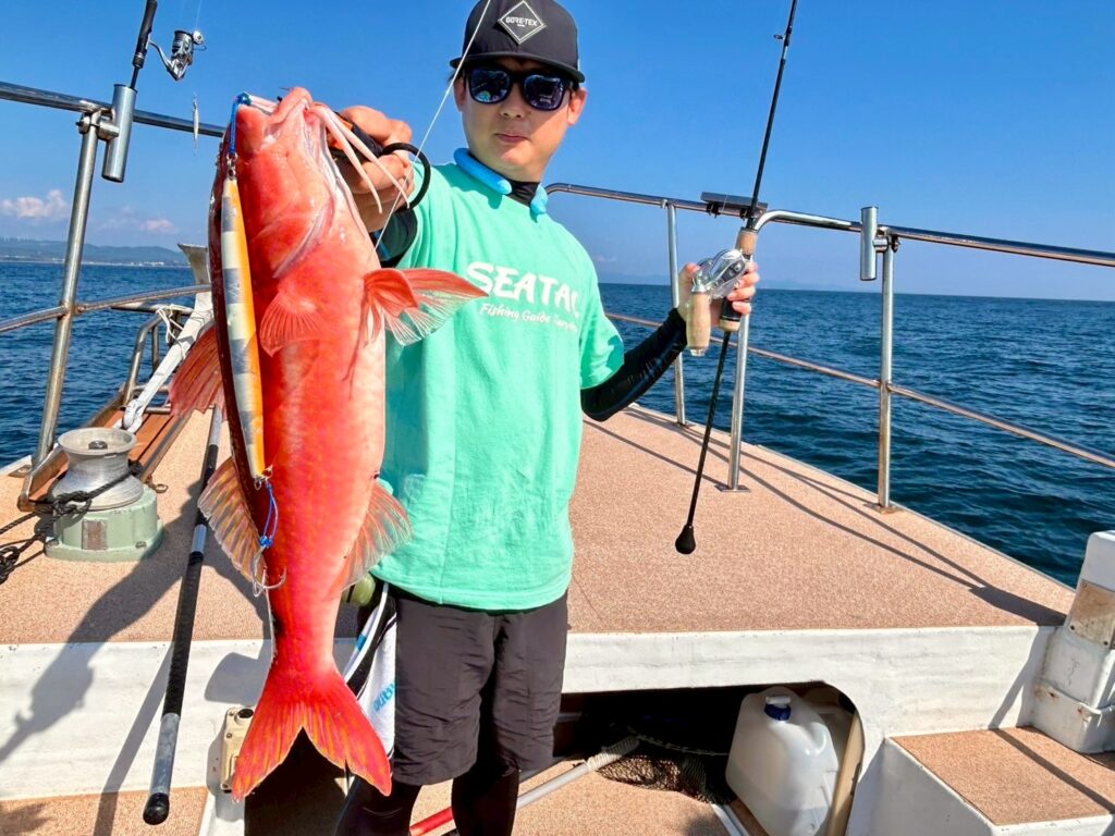 2025.09.07 2025.09.10 タイラバ タイラバ×チャーター seatac 船釣り初挑戦の女性は真鯛66cm‼️同じく初挑戦の男性はオオモン50cm‼️ その他もコンスタントに色々釣られて最終的には大漁でした🙌 本命真鯛は8枚🙆♂️掛けミスも多かったです💦 ありがとうございました✨初心者の方も大歓迎です👍全員初心者なんですもOKです👍レンタルタックルも豊富に揃ってます👍ご予約お待ちしてます☆ #アカハタ#オオモンハタ#ヒラメ#真鯛