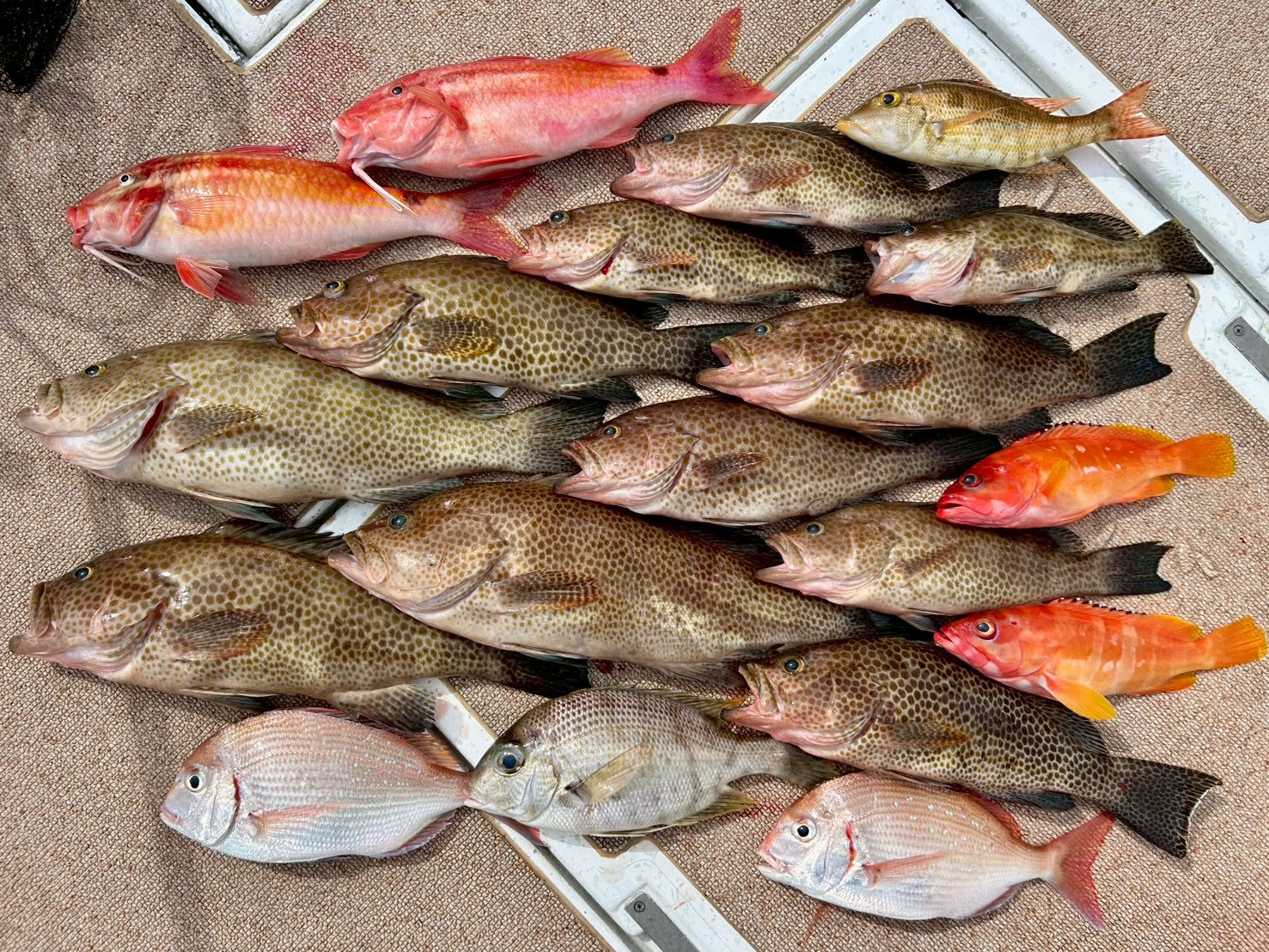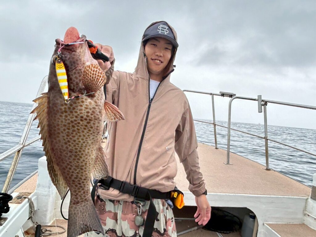 2025.10.17 スーパーライトジギング SLJ×TAIRABA seatac 50cmオーバー2本他、良型オオモン祭りにデカメイチなど✨ 初心者の方も沢山釣ってくれました👍ありがとうございました😊 #アカハタ#オオモンハタ#ハタ