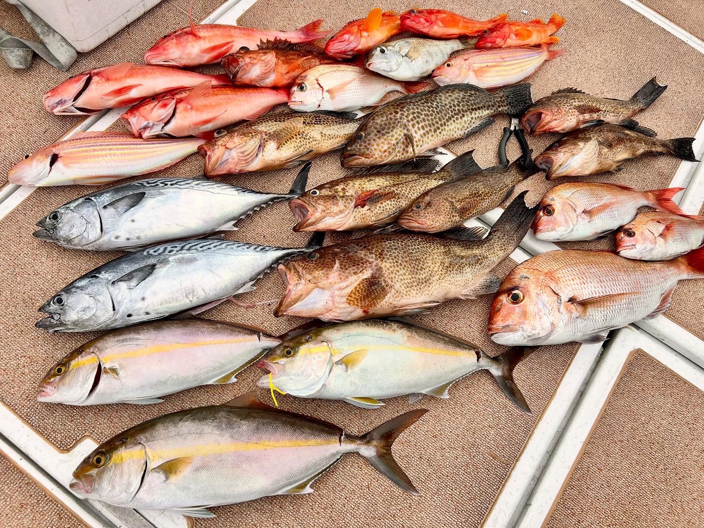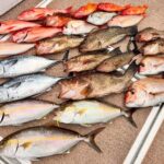 2025.10.25 イカ ライトジギング×ティップラン seatac 安定のランカーオオモン50cmシオ 51cmスマ 46cmなど連発‼️ ヤイトもシオも肥えてコロコロ😍バラシ、デカいのラインブレイク多発‼️ ティップランも少しやりましたが良型アオリ 7杯でした🦑 ありがとうございました😊✨ #アカハタ#イカ#オオモンハタ#カンパチ#真鯛#青物