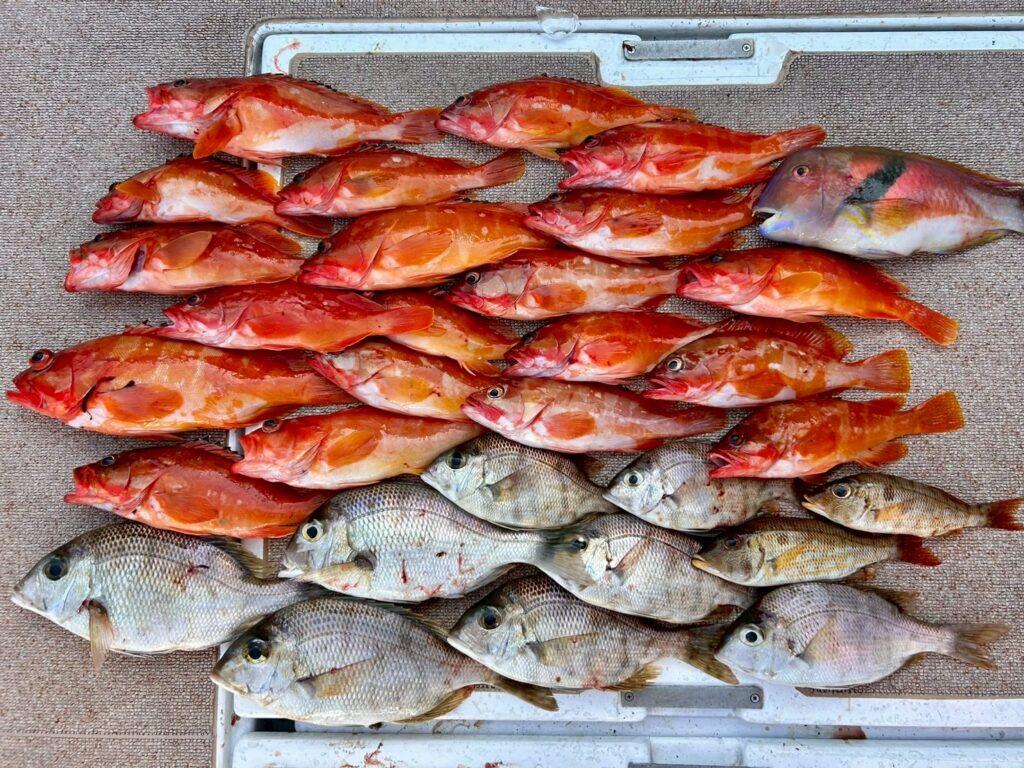 2025.11.11 2025.11.22 タイラバ 一つテンヤ×タイラバ seatac 釣りはほぼ初挑戦🔰フルレンタル便で良型メイチやアカハタ大漁でした👍 リリースも沢山ありがとうございました😊 #アカハタ#オオモンハタ#ハタ