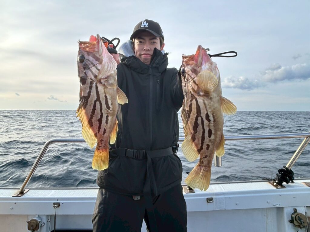 2025.12.10 2025.12.19 スーパーライトジギング ライトジギング×タイラバ seatac 50オーバー筆頭にホウキハタ3連発🧹✨ 50オーバーのアオハタにオオモン、シオ(カンパチ)まで🙆♂️ アタリは少ない日でしたが高級魚で揃えていただけました😋 ありがとうございました✨ #オオモンハタ#カンパチ#ハタ